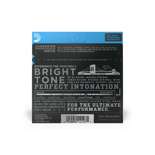 Struny do gitary elektrycznej XL Nickel Wound to standard, względem którego mierzone są wszystkie inne struny. Nasz najlepiej sprzedający się zestaw do gitary elektrycznej, XL Nickel, jest ceniony przez gitarzystów na całym świecie od 1974 roku. Wykonane z wysokowęglowego rdzenia stalowego i owijki z niklowanej stali, struny XL Nickel charakteryzują się jasnym, uniwersalnym brzmieniem, idealnym do wielu różnych stylów muzycznych. Struny o grubości 10-46 (Regular Light) to nasz najpopularniejszy rozmiar, zapewniający doskonałą równowagę między brzmieniem a komfortem gry.