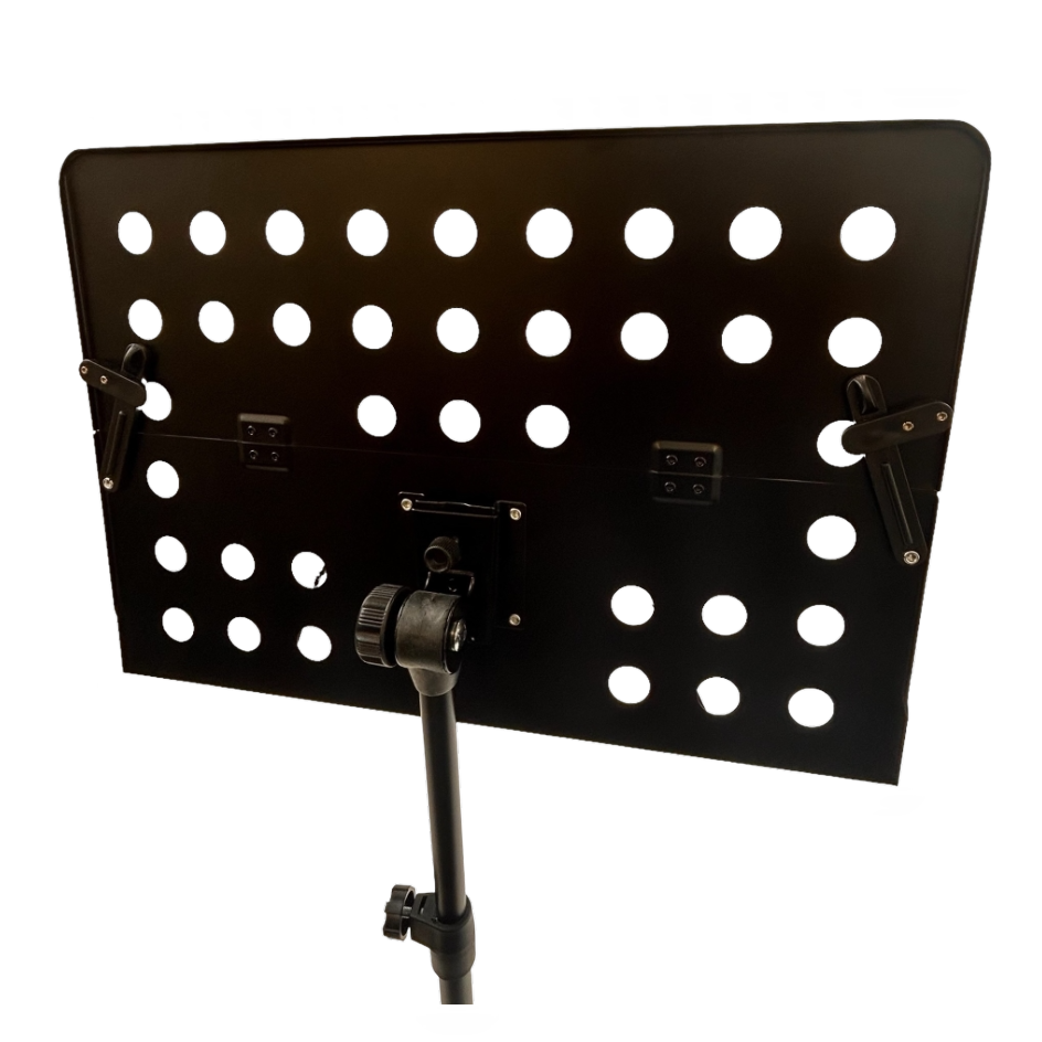Solidny i profesjonalny pulpit do nut. Posiada dwupunktową regulację wysokości, co pozwala na wygodne czytanie tekstów utworów lub partii nutowych zarówno siedząc i stojąc. Statyw wyposażony jest w specjalne łapki do przytrzymywania kartek, dzięki czemu nie będzie problemu z uciekającymi nutami. Kąt nachylenia pulpitu względem użytkownika jest regulowany, a jego głębokość jest stosunkowo duża, pozwalająca umieścić nawet segregator. Posiada trzy składane nóżki zapewniające stabilność zarówno w domu jak i na scenie. Materiały użyte przy wykonaniu statywu gwarantują niezawodność i komfort przy długim użytkowaniu. Idealny dla zespołów muzycznych, studiów nagraniowych, wykonawców scenicznych, szkół i nie tylko. Spakowany w jednym kartonie.