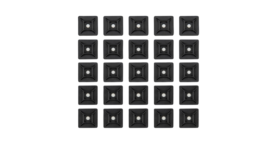 - 25 x uchwyty do opasek kablowych 20 x 20 mm, czarne, samoprzylepne